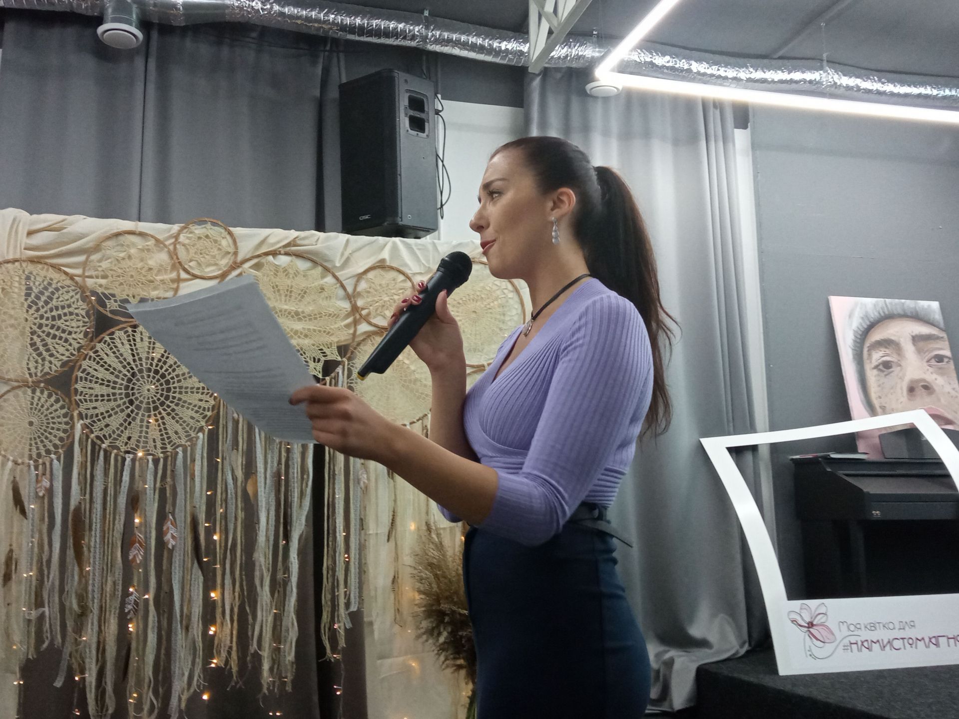 Розпочався благодійний захід із чуттєвого вірша у виконанні вінницької актриси й режисерки Анни Вараниці. Римовані рядки налаштували присутніх на спокійний і піднесений настрій. Настрій творити добро.