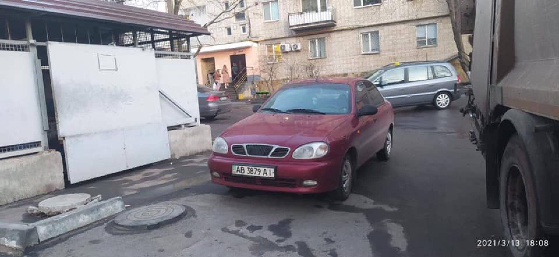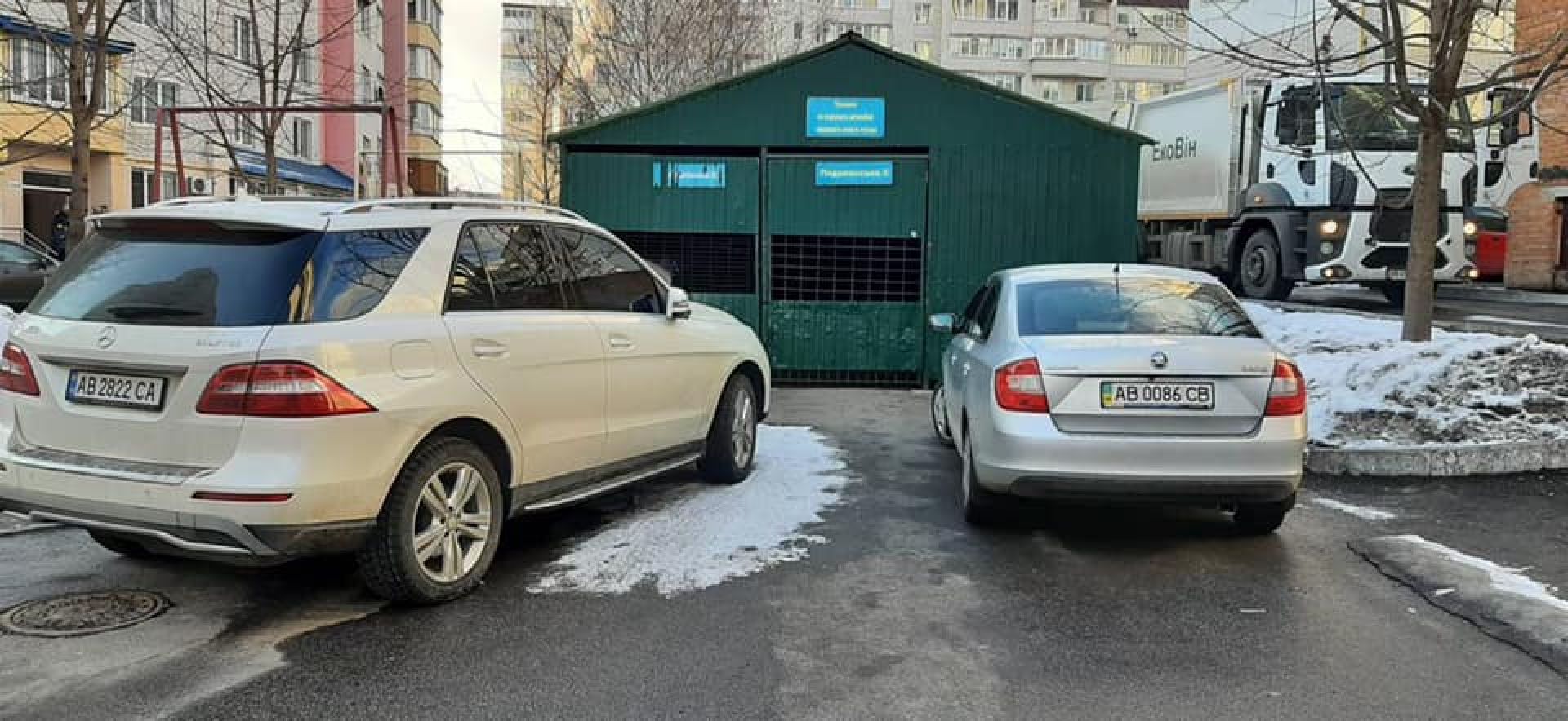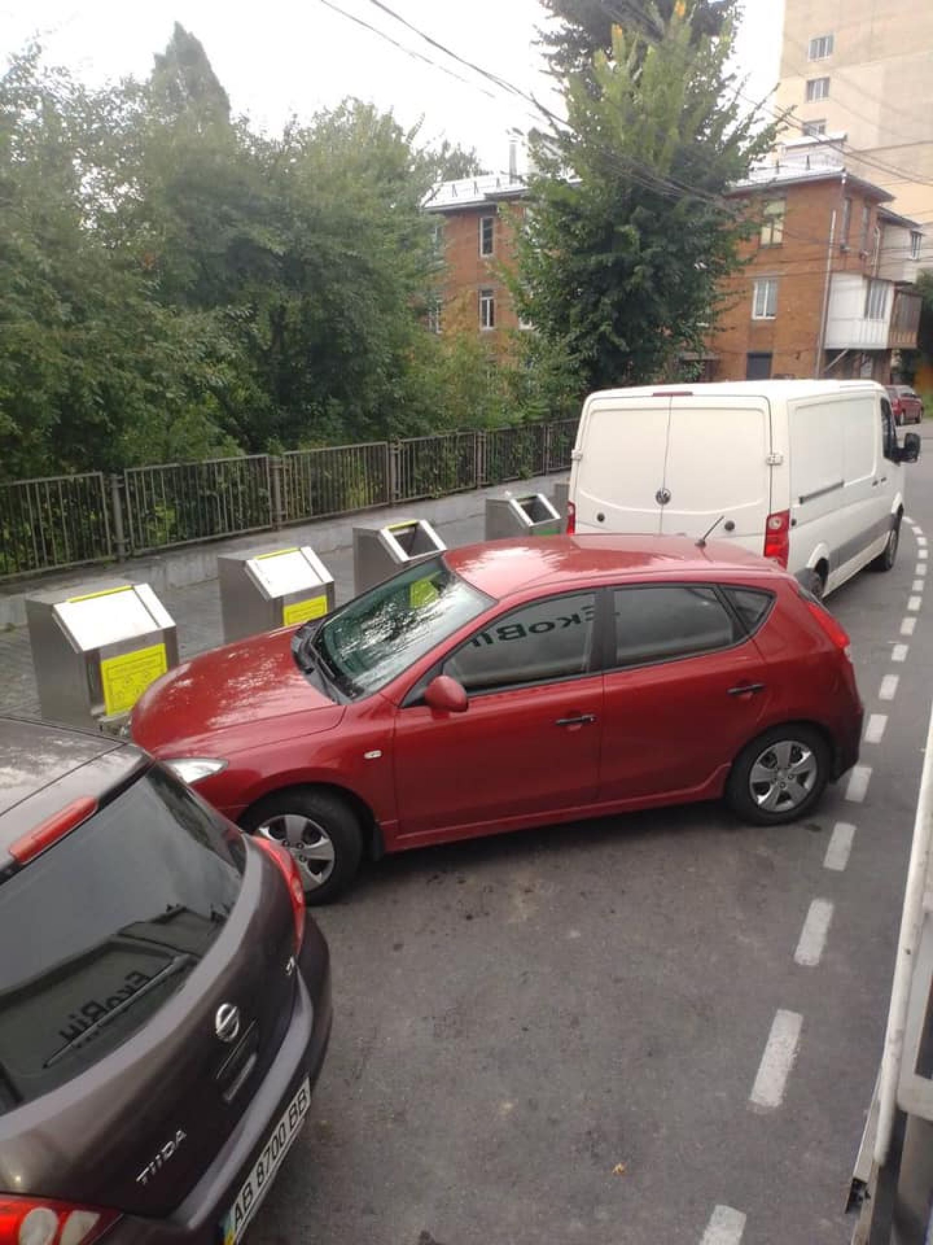 Ми вас розуміємо. Але для початку видихніть, а ось тепер роззирніться навколо. Можливо, причина безладу не в байдужості сміттярів, а в оцих запаркованих перед сміттєвим майданчиком сусідських машинах? Прикро, якщо одна з автівок, яка заважає під’їзду сміттєвоза, ваша.