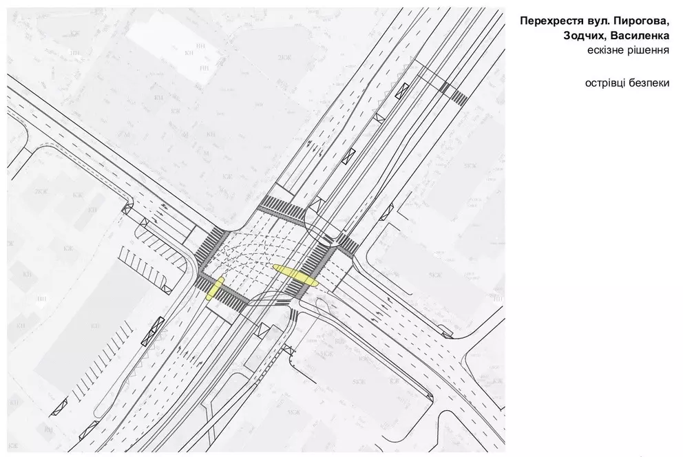 Проте, технічним завданням НЕ ПЕРЕДБАЧЕНО установка острівців безпеки: їх немає у переліку завдань до майбутнього підрядника.