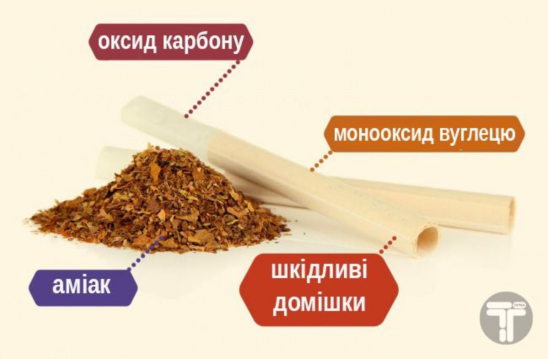 Портал Тутка створив інфографіку, де зібрав найпоширеніші засоби для куріння: цигарки, сигари, електронні сигарети, вейпи та кальян та вказав, що отримує організм людини під час їх куріння. Результат — усе шкідливо. Дивіться самі: