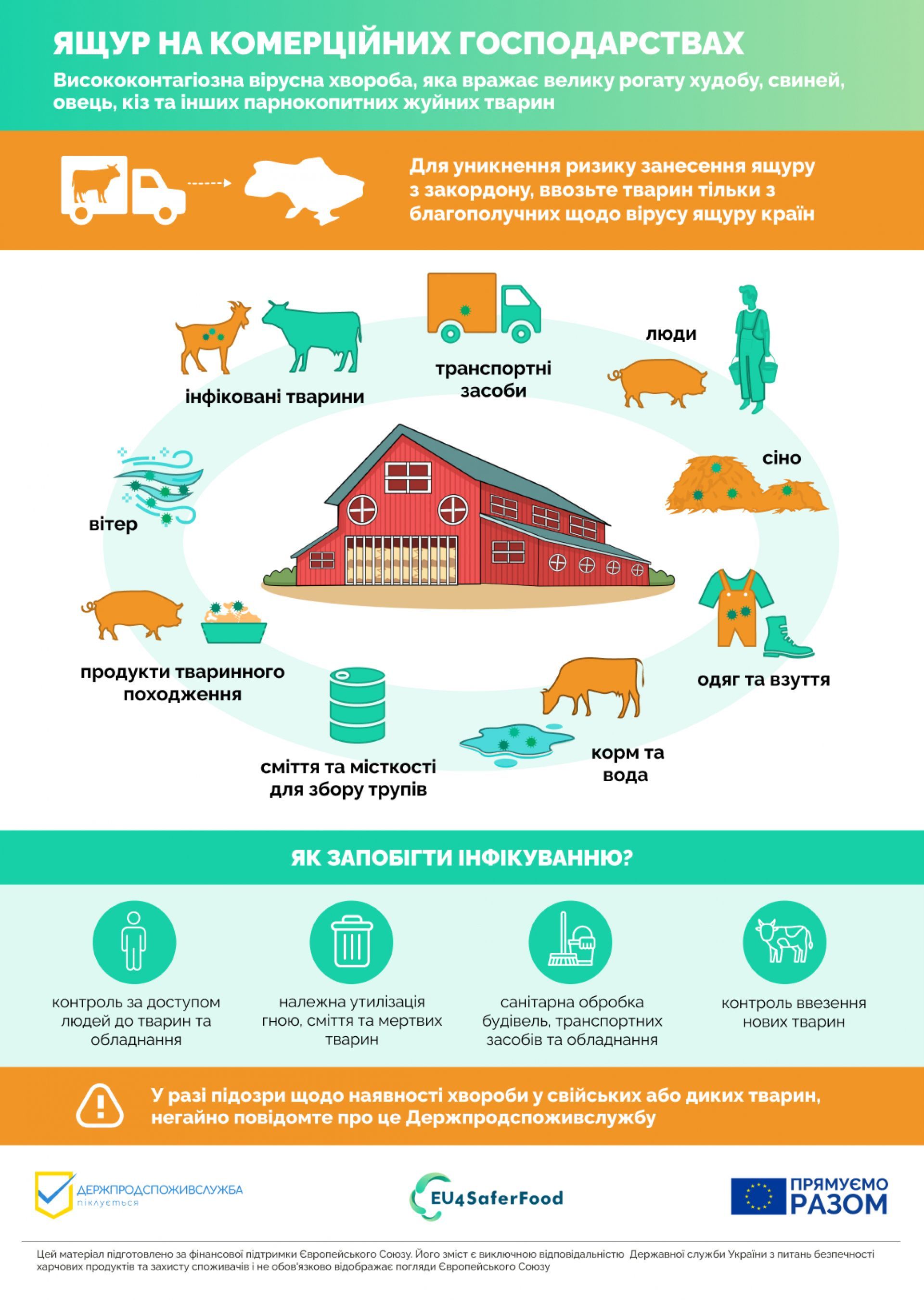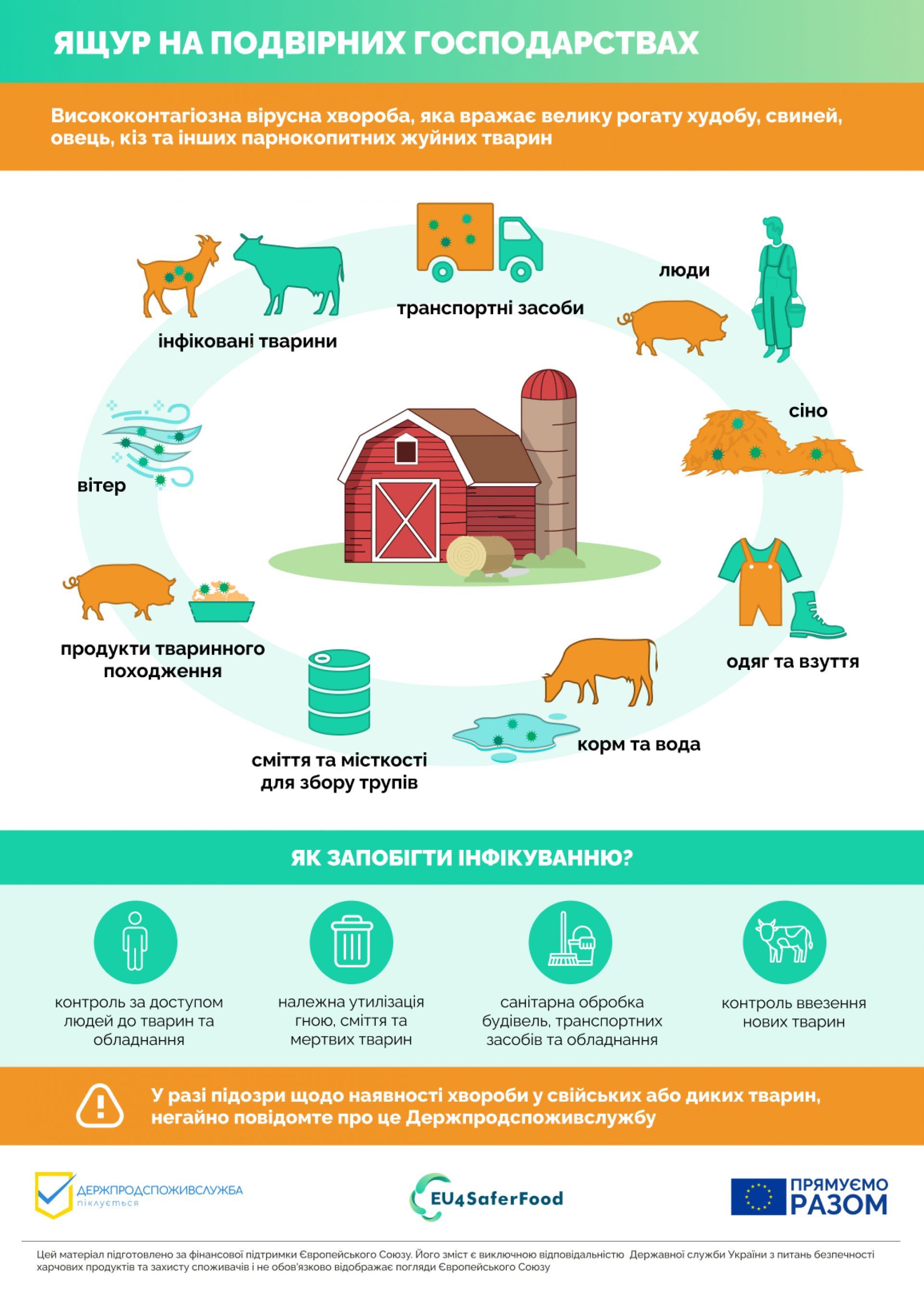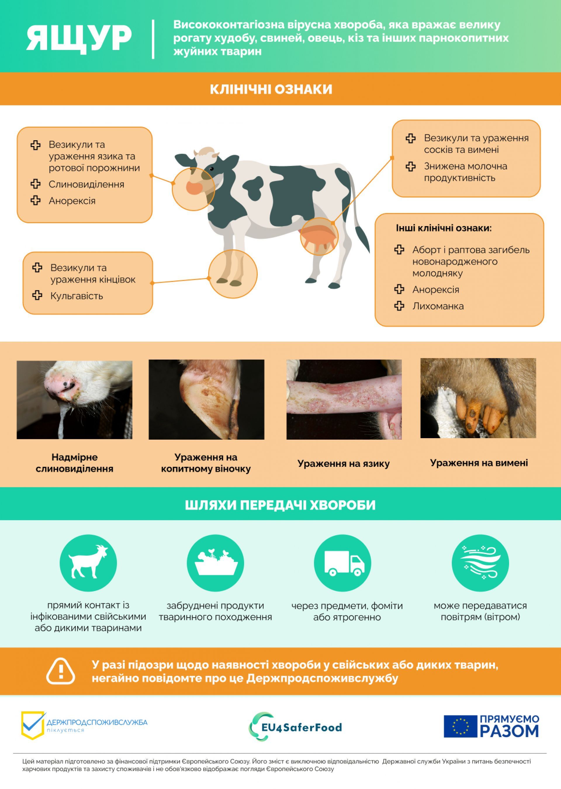 В Україні ящур не фіксували протягом майже 40 років. Ця високозаразна хвороба передається повітряно-крапельним шляхом і становить серйозну небезпеку для парнокопитних тварин, як свійських (корів, кіз, свиней, буйволів), так і диких (косуль, кабанів). Основними носіями ящуру для людини є інфіковані тварини, зокрема корови, молоко яких може містити збудник хвороби.