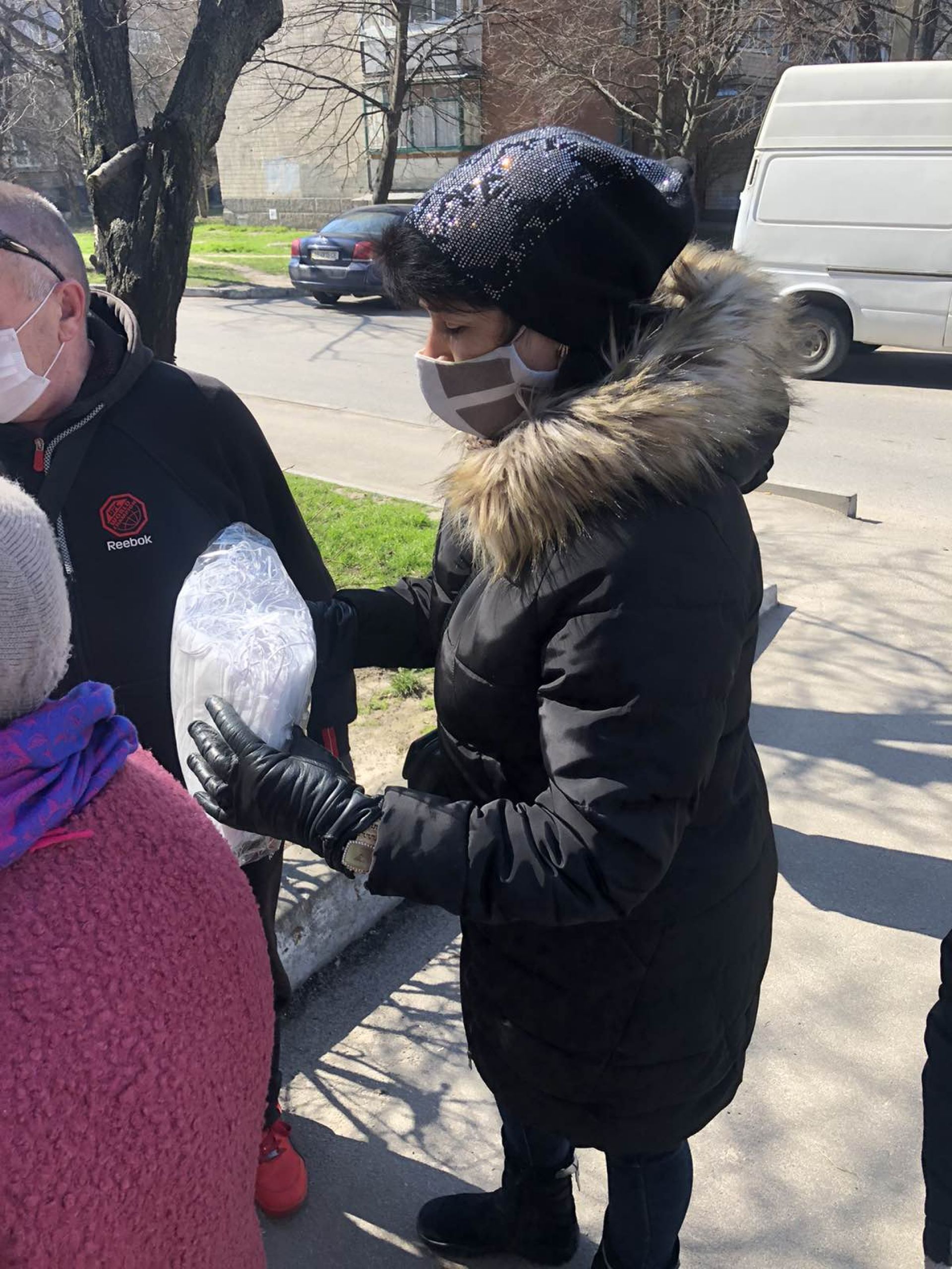 Захисні маски роздали мешканцям будинків з номерами 28, 46, 50, 40, 42, 40-А, 44, 48, 48-А, 52, 54, 54-А, 56, 58, 60 по вул. О.Антонова та мешканцям будинку 10 вул. Чехова.