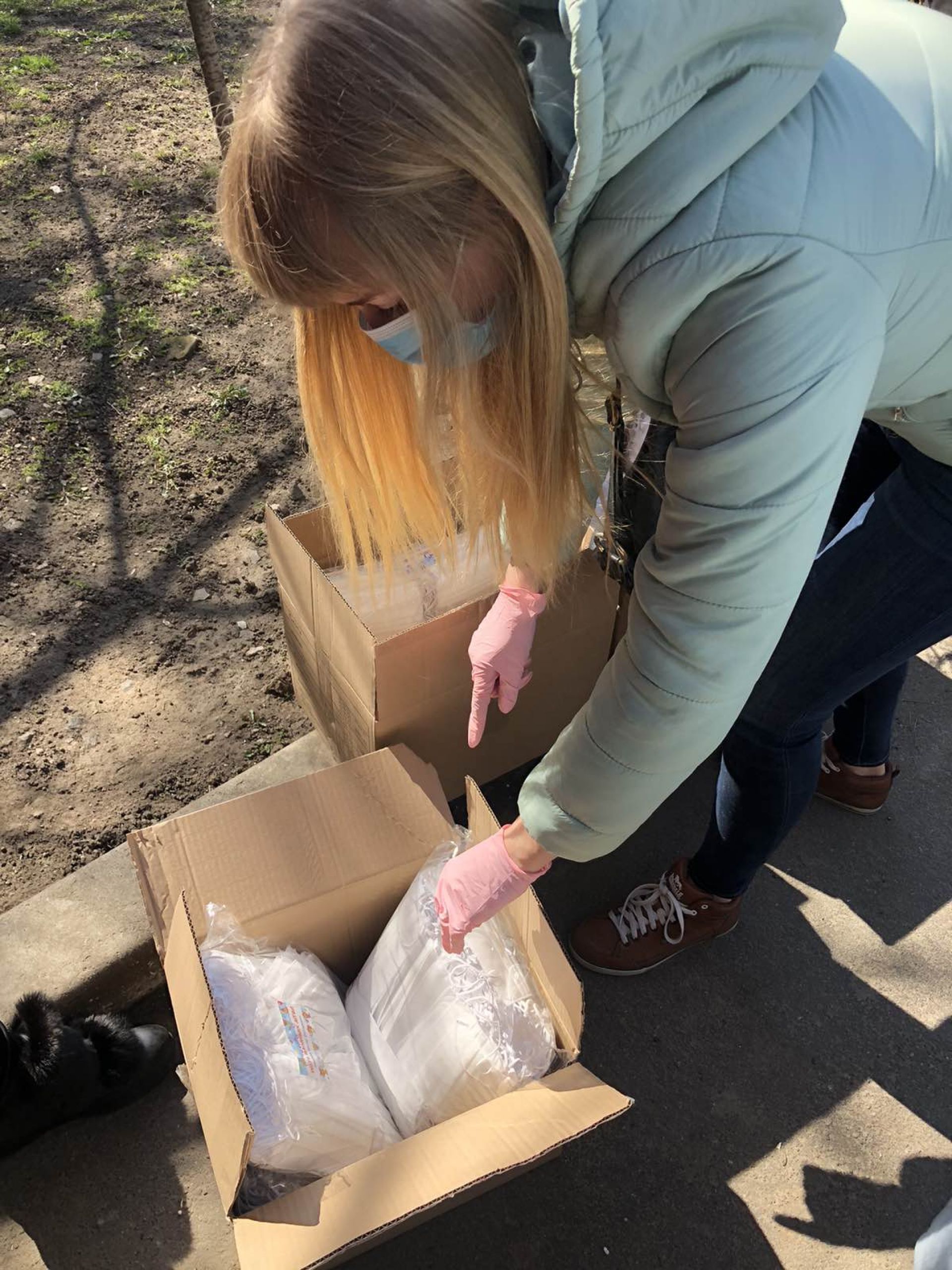 Сьогодні для мешканців будинків по вулиці О.Антонова було організовано роздачу захисних масок та адресну доставку соціальних продуктових пакетів.