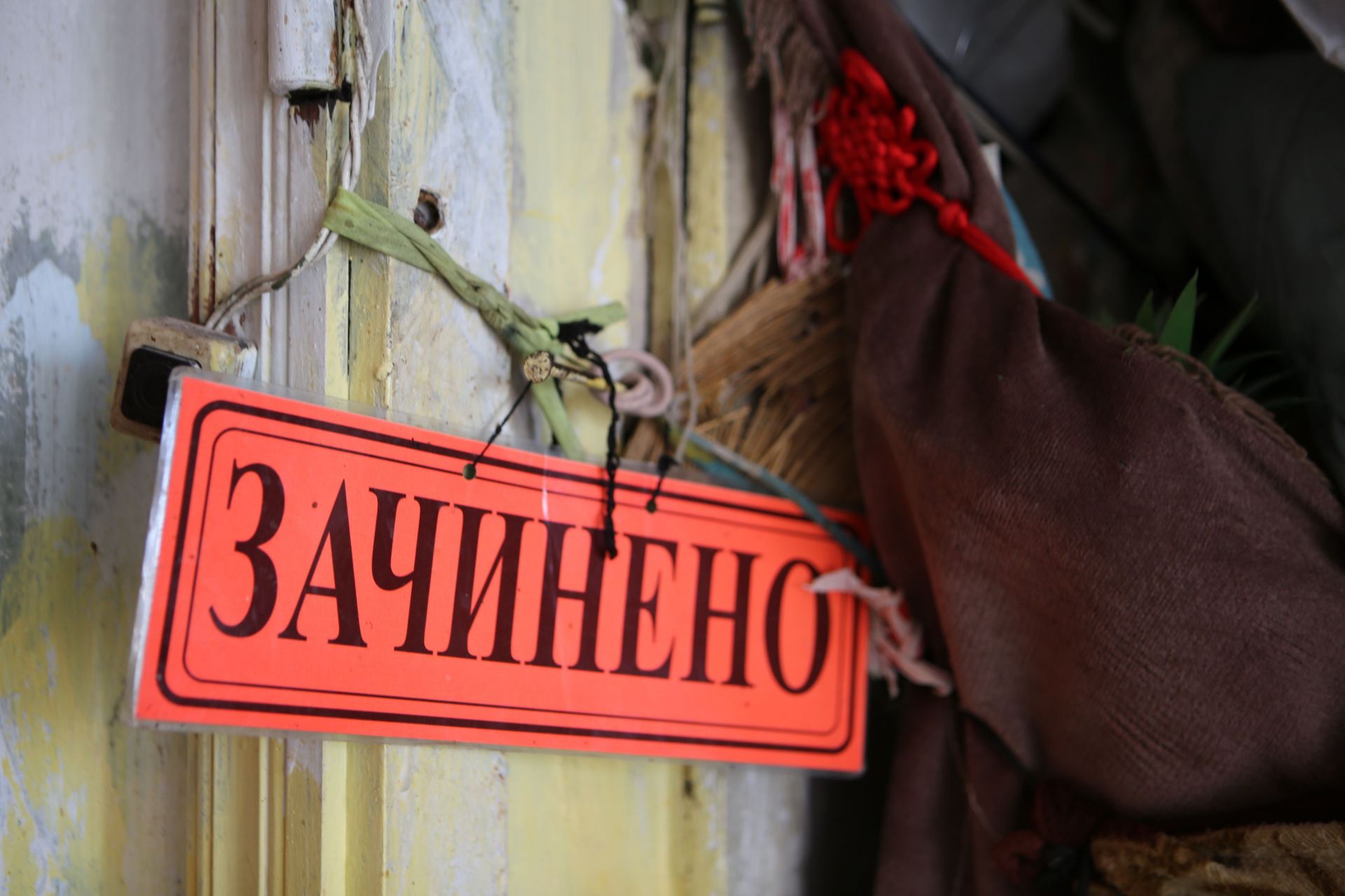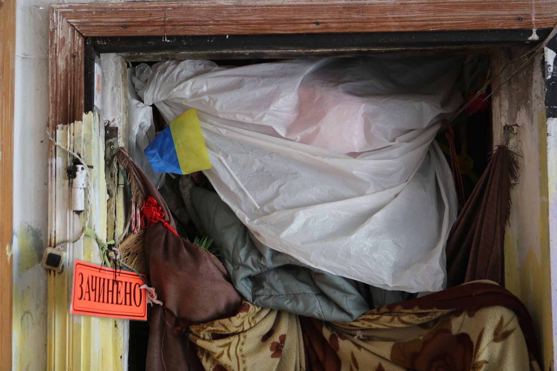І, справді, замість дверей у жінки навалена «барикада» зі сміття, а поряд висить табличка «закрито».