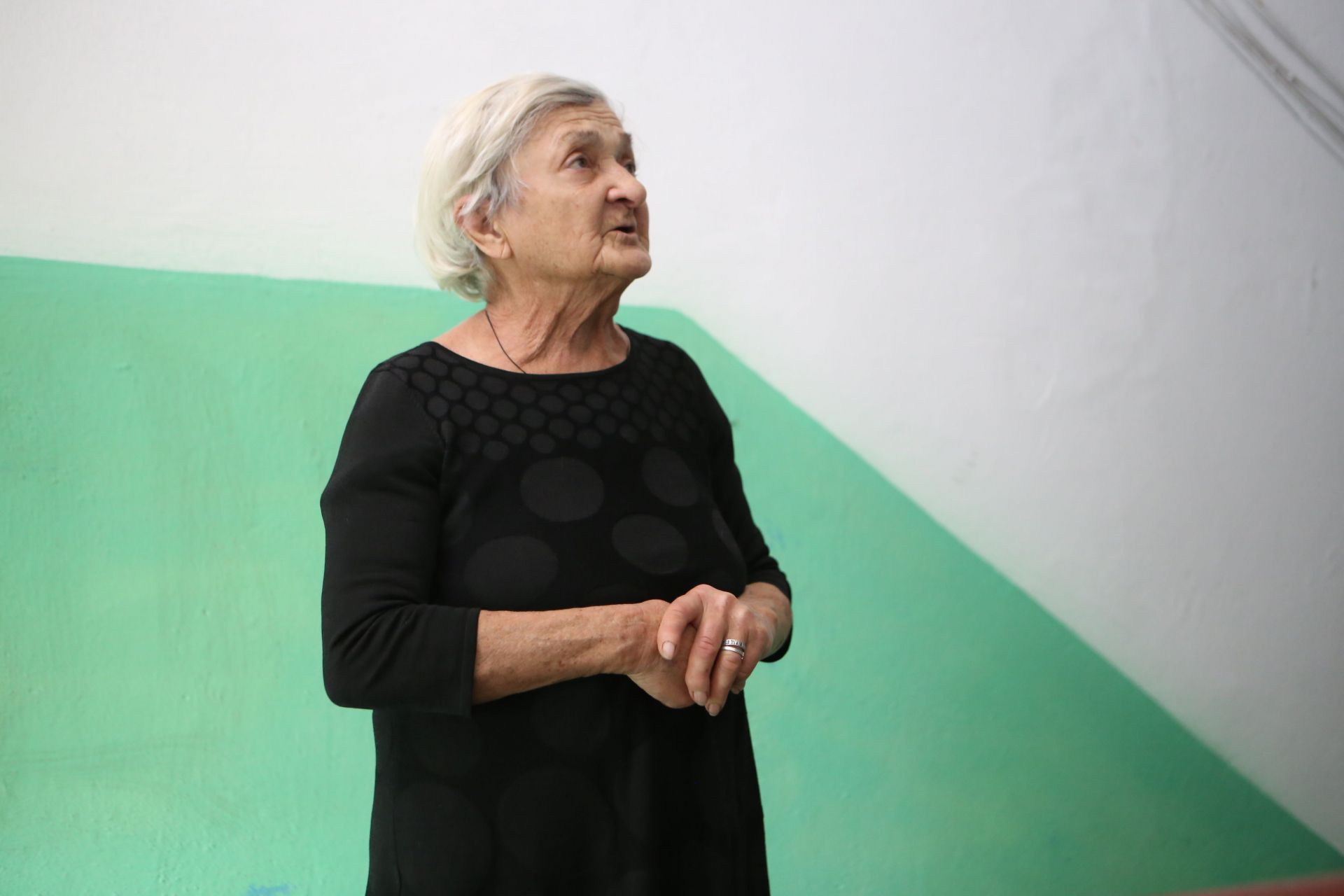 Жінка, на яку скаржиться весь під’їзд — низенька бабуся, скромно одягнута, їй 76 років. Вона справляє враження інтелігентної жінки, яка має чималий багаж знань. І як всі люди поважного віку, — ледь не усе знає про своїх сусідів по під’їзду.