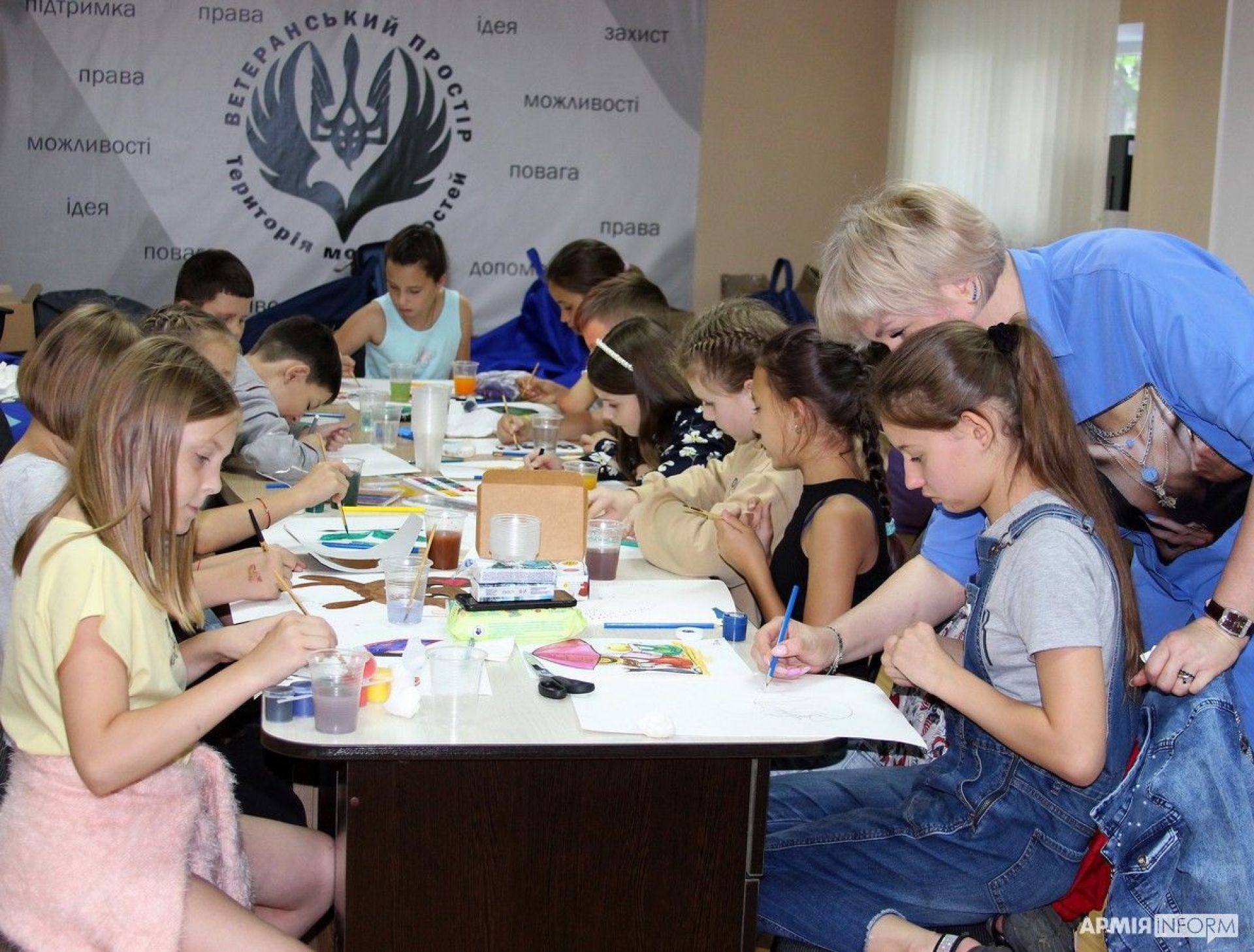 - Для дітей вінницький військових провели майстер-клас з малювання. У такий спосіб малечу намагалися відволікти від переживань та стресу.