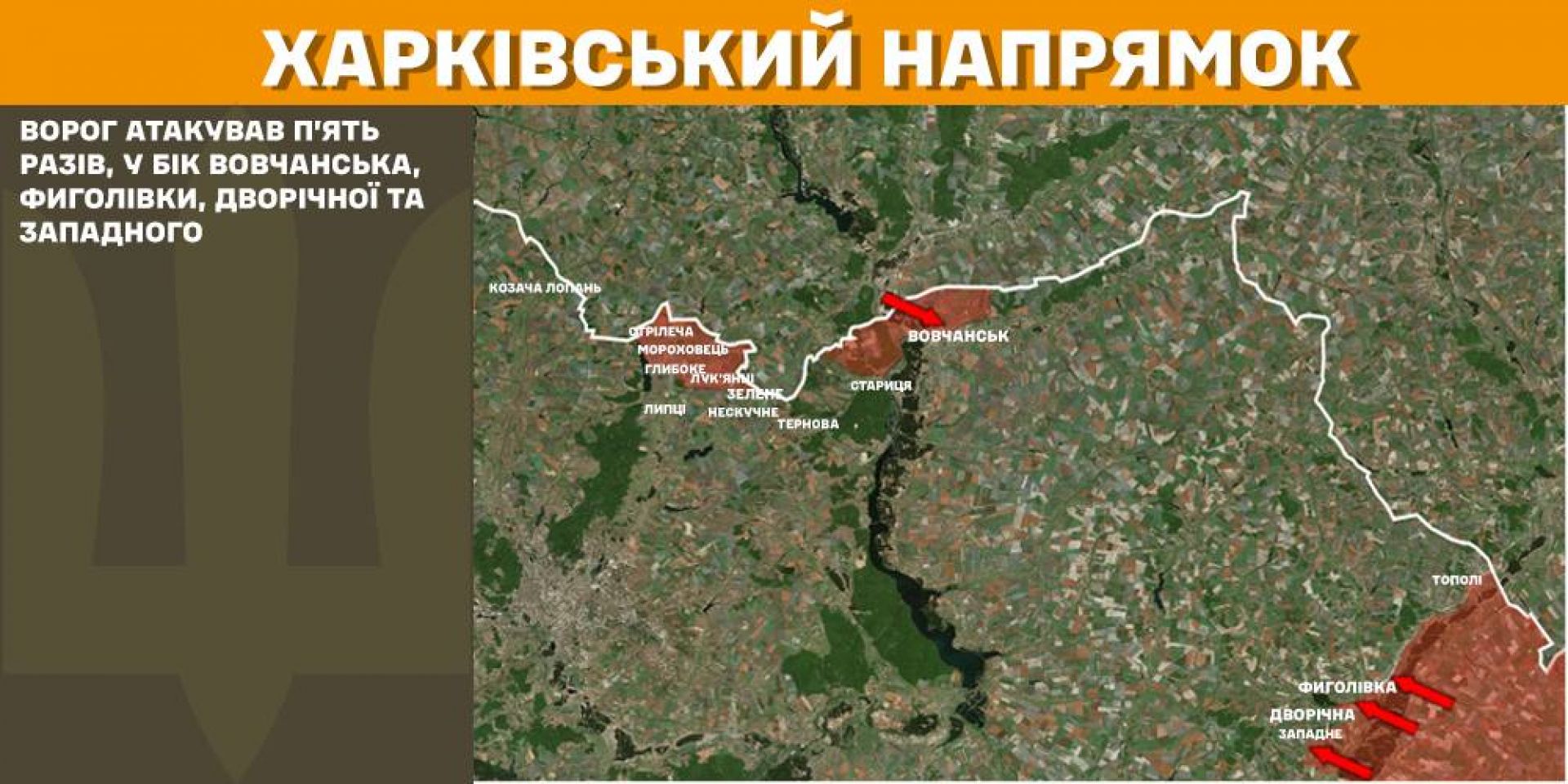 На Харківському напрямку ворог атакував п’ять разів, у бік Вовчанська, Фиголівки, Дворічної та Западного.