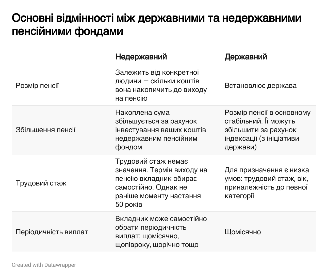 Друга — добровільно-накопичувальна система. Вона передбачає добровільну участь громадян у формуванні власних пенсійних накопичень завдяки внескам від фізосіб чи роботодавців. Система є, але не має попит в українців через слабку довіру до приватних фондів, які надають такі послуги, кажуть на порталі epravda.com