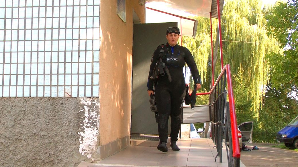 Перед зануренням Тетяна проходить медичний огляд. Після нього дівчина одягає водолазне спорядження. Жилет, балон із киснем, вантажний ремінь й маска — разом важать понад 30 кілограмів. Неважко, каже, звикла. Розмінування під водою важче й небезпечніше — пояснює водолазка-саперка. Під водою погана видимість і є особливості ґрунту на дні. Ховатися міни, гранати й артснаряди, які полишили по собі солдати РФ, можуть будь-де.