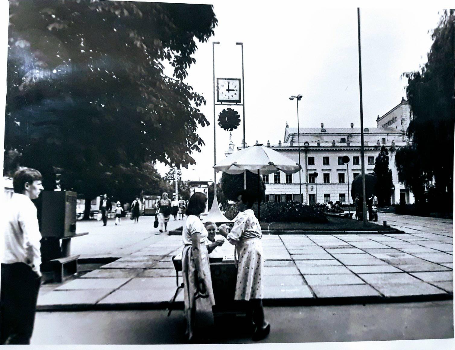 У 1980-х роках одним з найбільш впізнаваних атрибутів вінницького «Парижу» був годинник, що розміщувався посеред площі. Насправді годинників було два, але нам не вдалося достеменно встановити, коли перший замінили другим. Більш ранній виглядав класично, а ось його наступник віддавав якоюсь футуристичністю, яку мало хто з містян зрозумів.