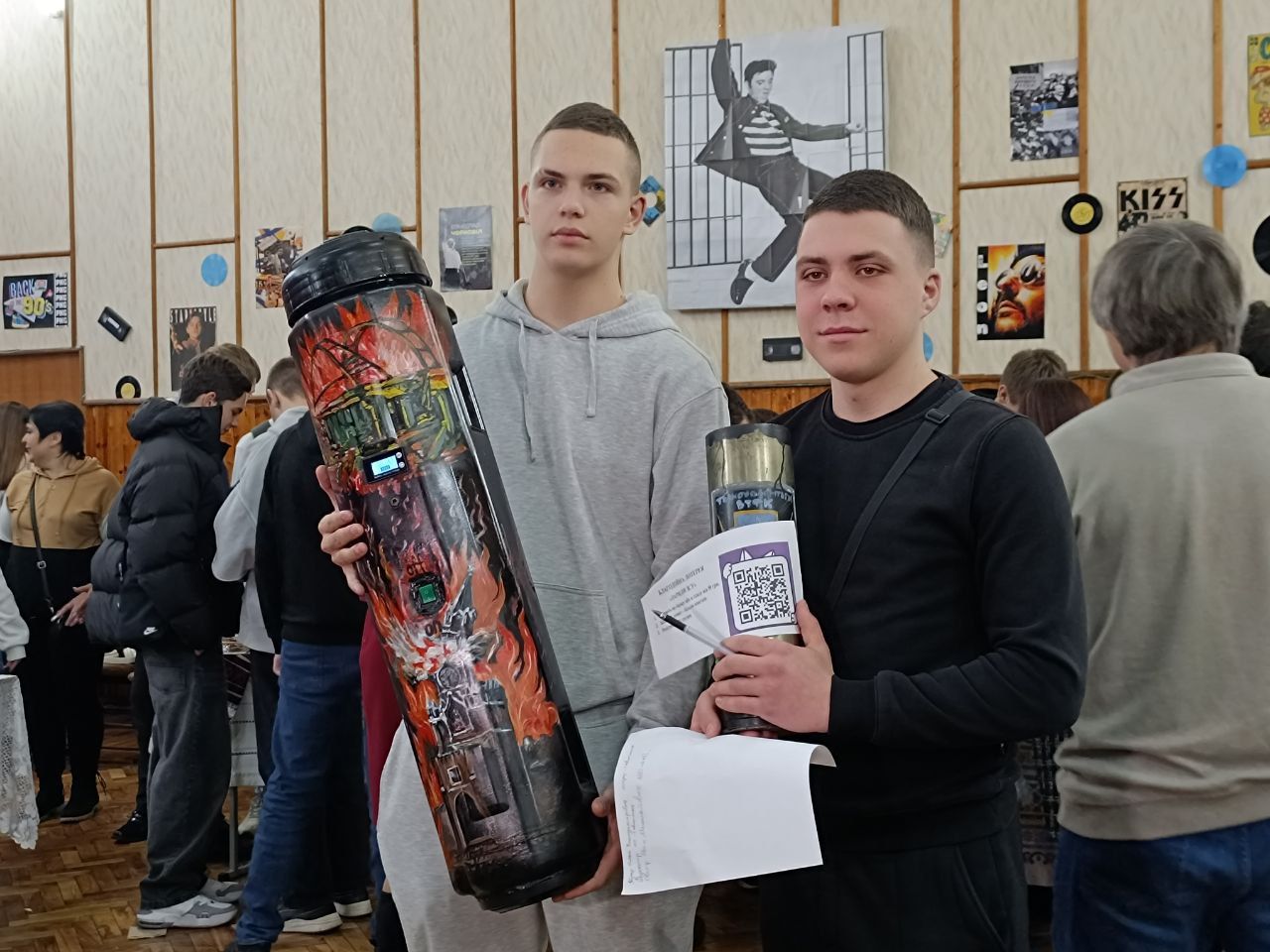 — Це був наш із одногрупником спільний проєкт. Він закуповував матеріали, а я паяв і вирізав. Так удосконалили його разом. Цей проєкт нам запропонував Олексій Грабенко (викладач фізики, — авт.). Він, звісно, поставив нам за це оцінки, а сьогодні ми розігруємо його серед студентів, викладачів та гостей. Один білет для участі коштує 50 гривень, — розповідає студент Андрій Караман. — Усі кошти, які ми зберемо, підуть на виготовлення зарядних підстанцій.