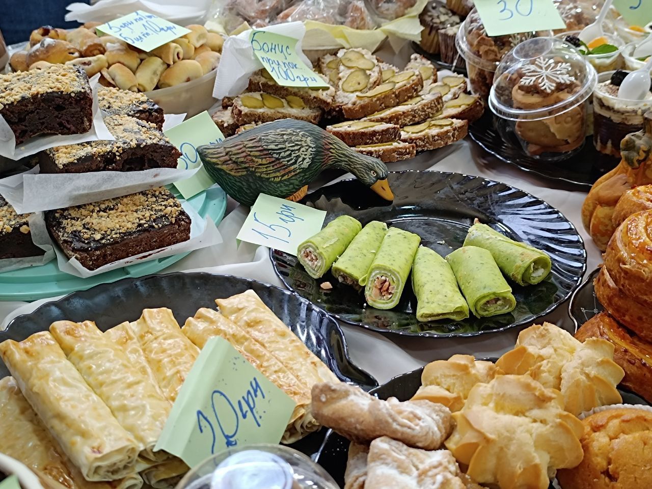 На ярмарку можна було побачити й скуштувати безліч цікавих і смачних страв: плов, чебуреки, тушковане м’ясо, різноманітні пиріжки, кекси, вафлі, канапки, желе та багато іншого.