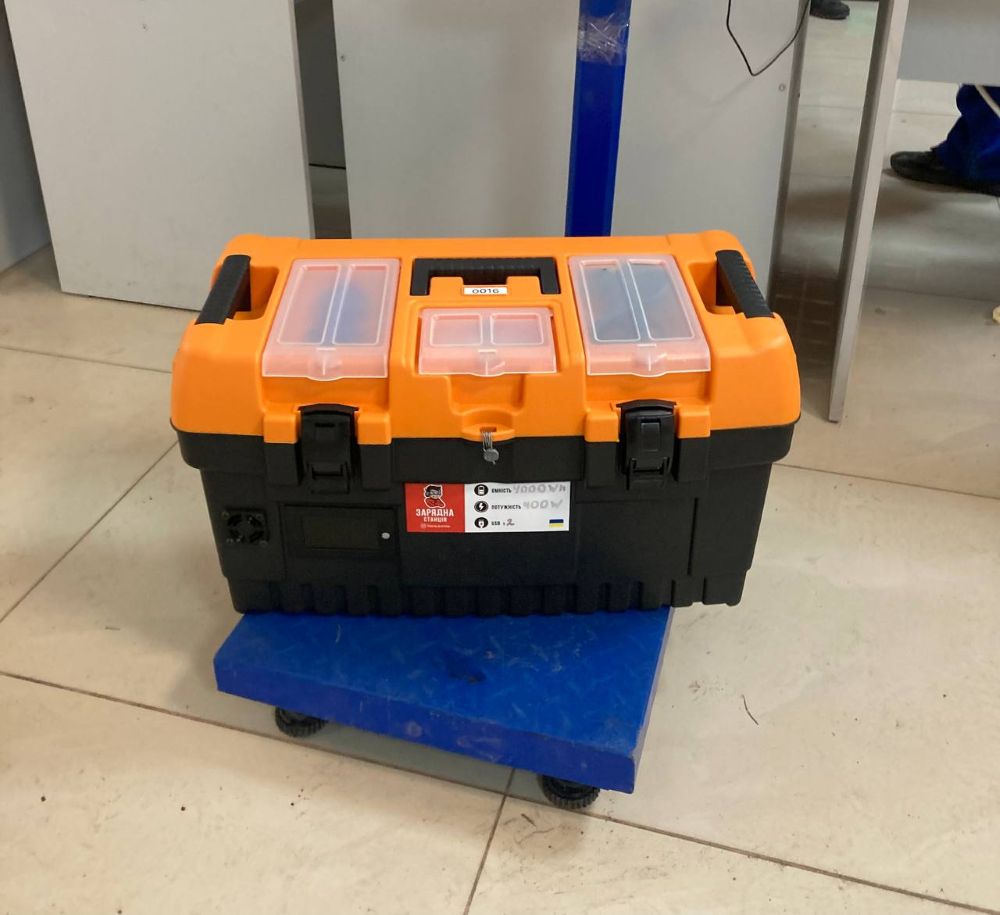 Співрозмовник називає основні складові свого пристрою. Це — акумулятори, інвертор, перетворювачі, корпус. Уточнює, що для корпусів використовує ящики з-під інструментів, вони з екструдованого пластику литого під тиском. Каже, такий корпус з найбільш дешевих і легкодоступних матеріалів. Акумулятори з’єднані платою контролю, витримують приблизно три тисячі циклів: заряд-розряд.
