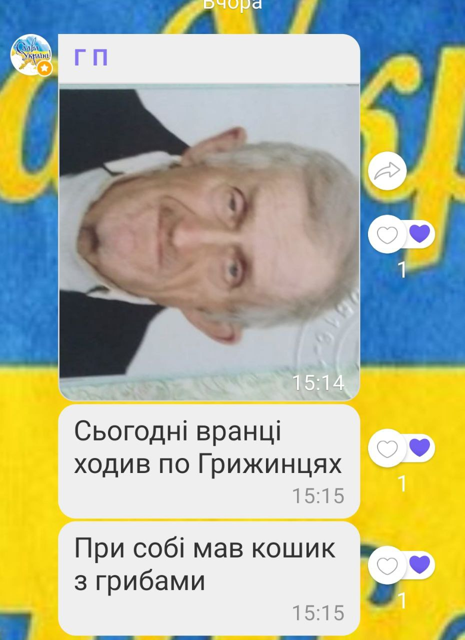 Зник дідусь з Медвежого Вушка. Люди бачили його з кошиком в Грижинцях ОНОВЛЕНО