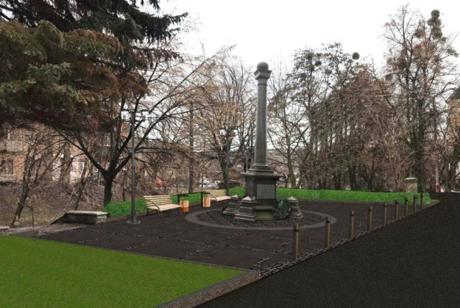 Зробили новий сквер на Оводова. У ньому не вистачає тільки чорної колони