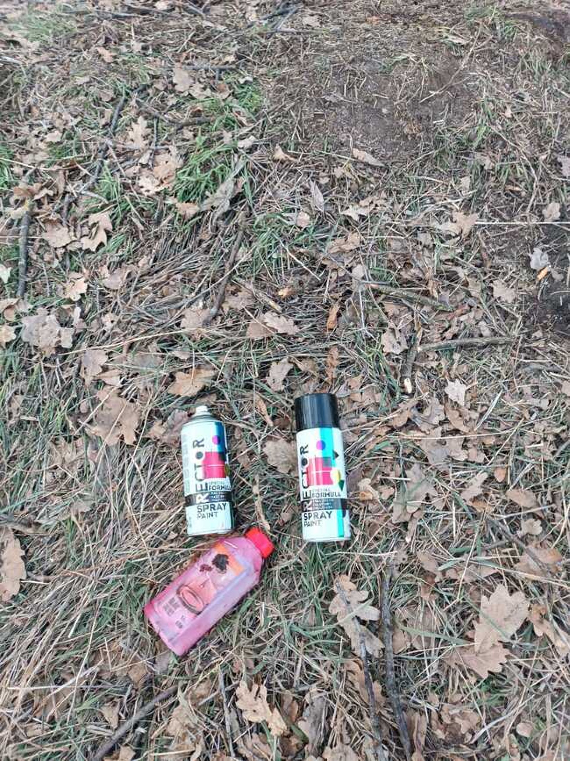 Особливої уваги заслуговує метод, яким намагалися приховати сліди злочину: пні спиляних дерев вони покривали чорною фарбою, щоб не впадали в око. Екологи виявили використані балончики на обстежуваній території.