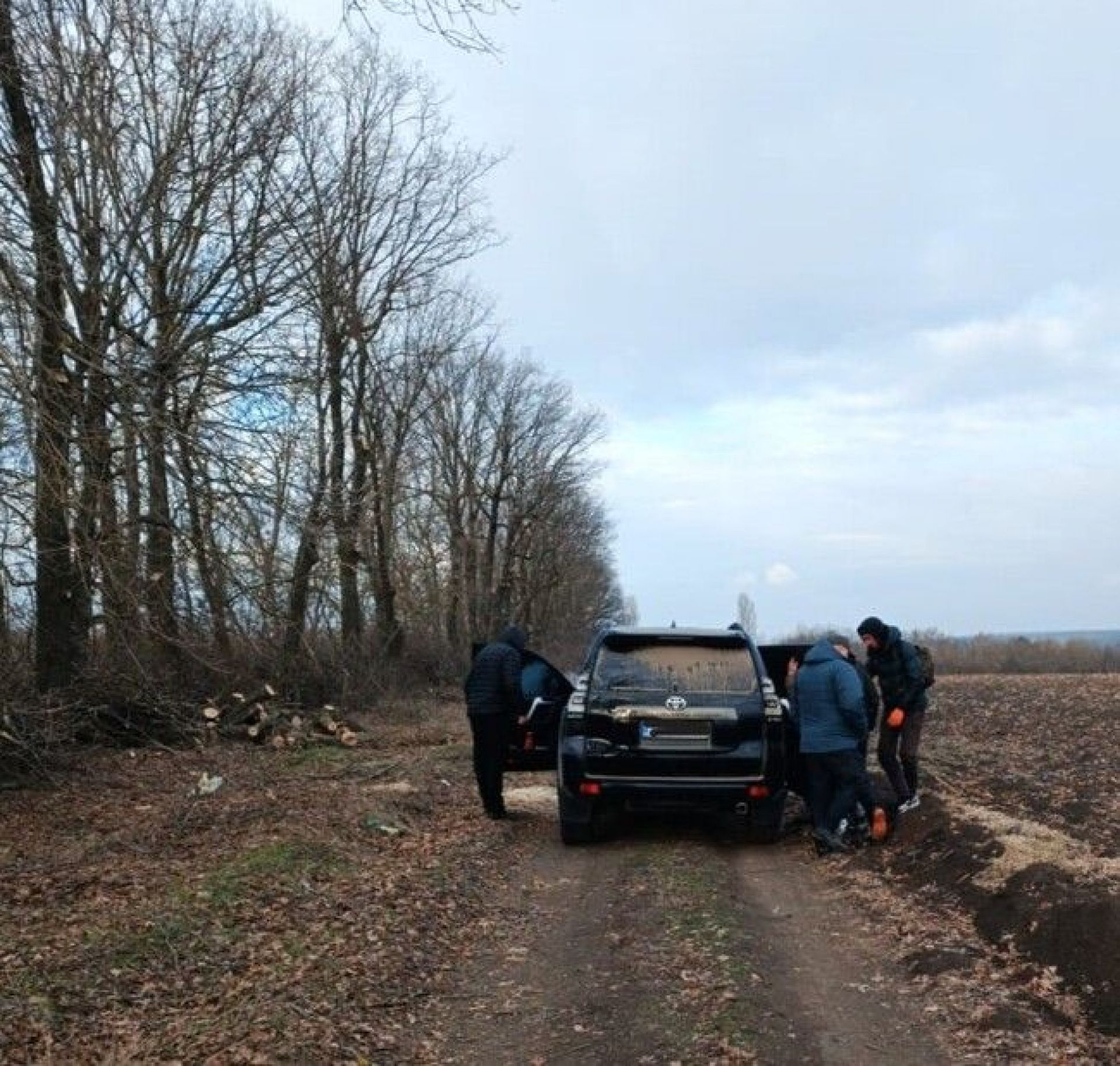 - Екологи зафіксували незаконну вирубку дерев у лісосмузі між селами Довжок і Шуми. На місці виявили вантажівку з деревиною, бензопили та сліди спроб приховати злочин — пні замальовували чорною фарбою.