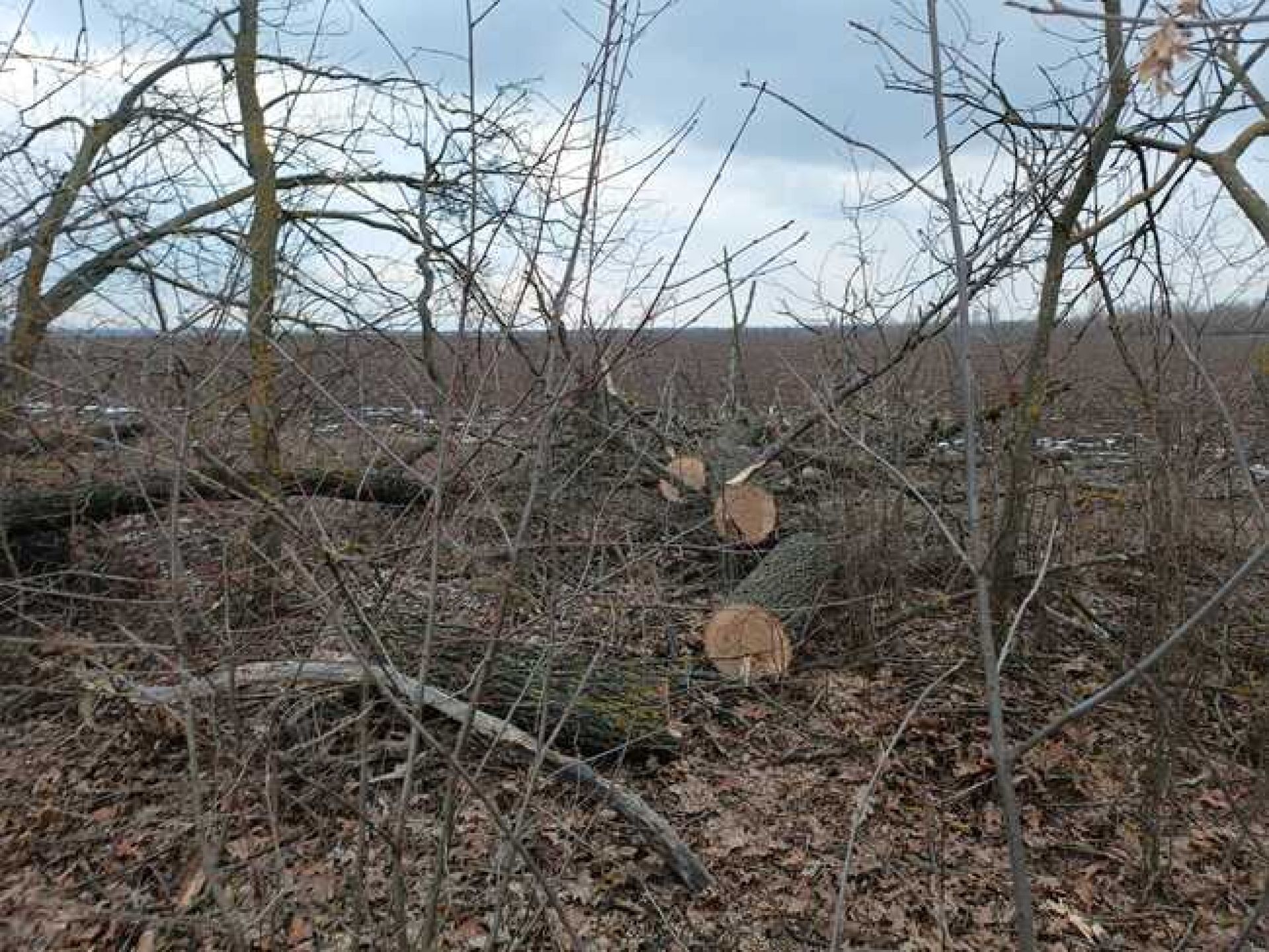 У полезахисній лісосмузі між селами Довжок (Ямпільська міська рада) та Шуми (Городківська сільська рада) 19 лютого близько 15.00 фахівці Державної екологічної інспекції у Вінницькій області зафіксували незаконну вирубку дерев. На місці застали людей, які знищували дерева різних порід і діаметрів.