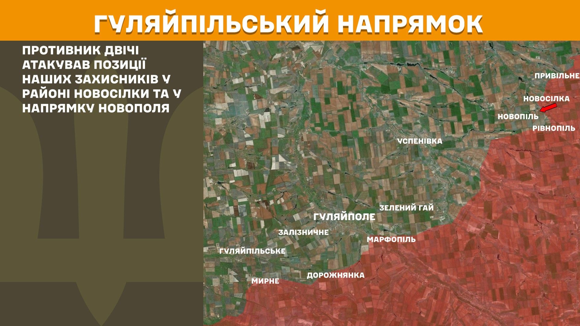 Противник двічі атакував позиції наших захисників, у районі Новосілки та у напрямку Новополя на Гуляйпільському напрямку.