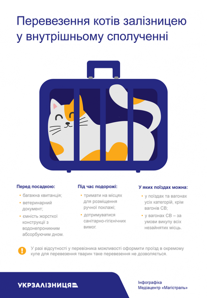 Ось перелік основних правил для котів, птахів та інших дрібних кімнатних тварин, які читаємо на сайті «Укрзалізниці»:
