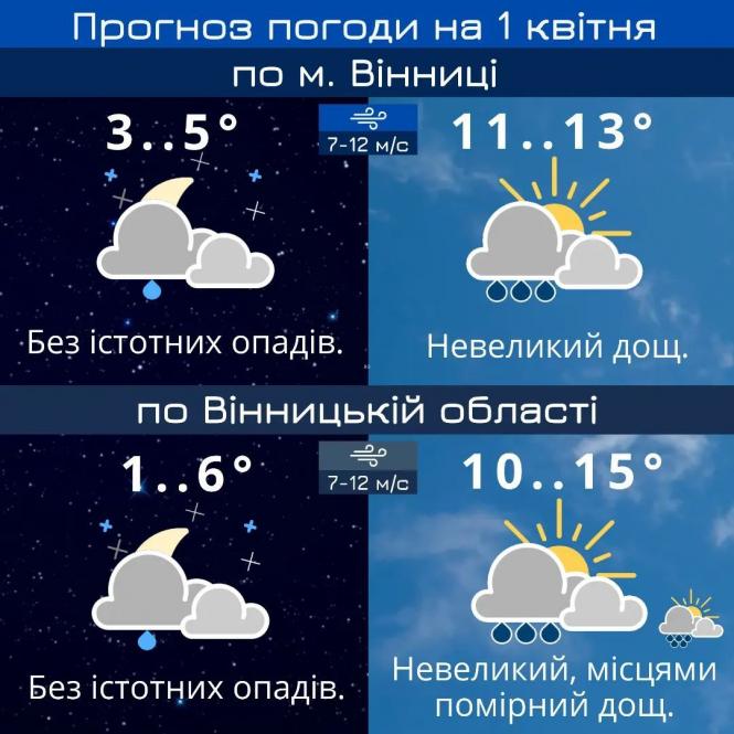 Вінницький обласний центр з гідрометеорології опублікував прогноз на 1-10 квітня.