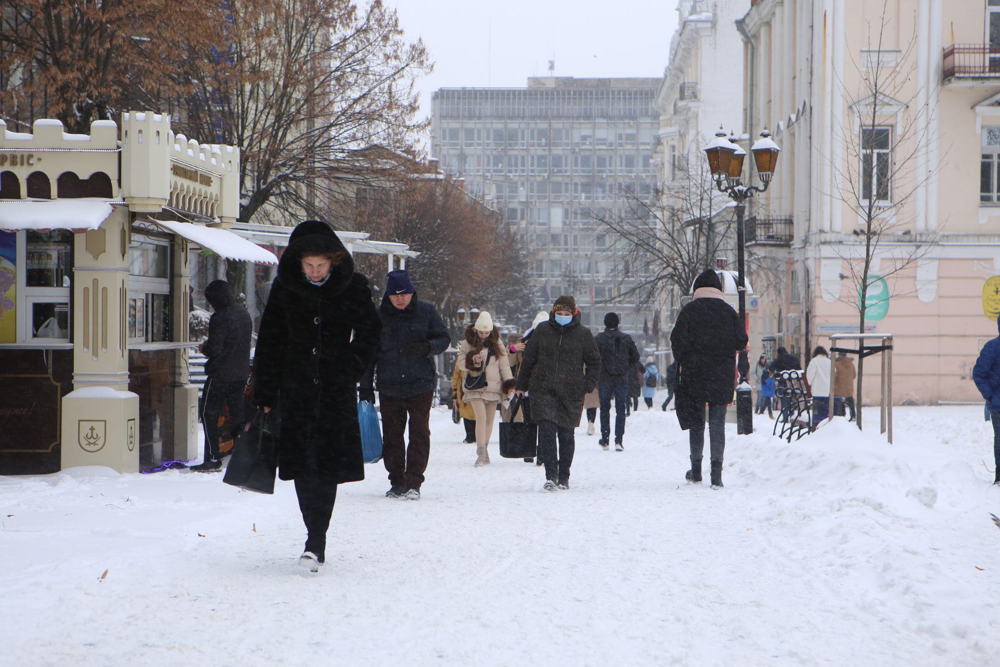 Основні автомобільні та пішохідні зони в центрі Вінниці були добре розчищені від снігу.