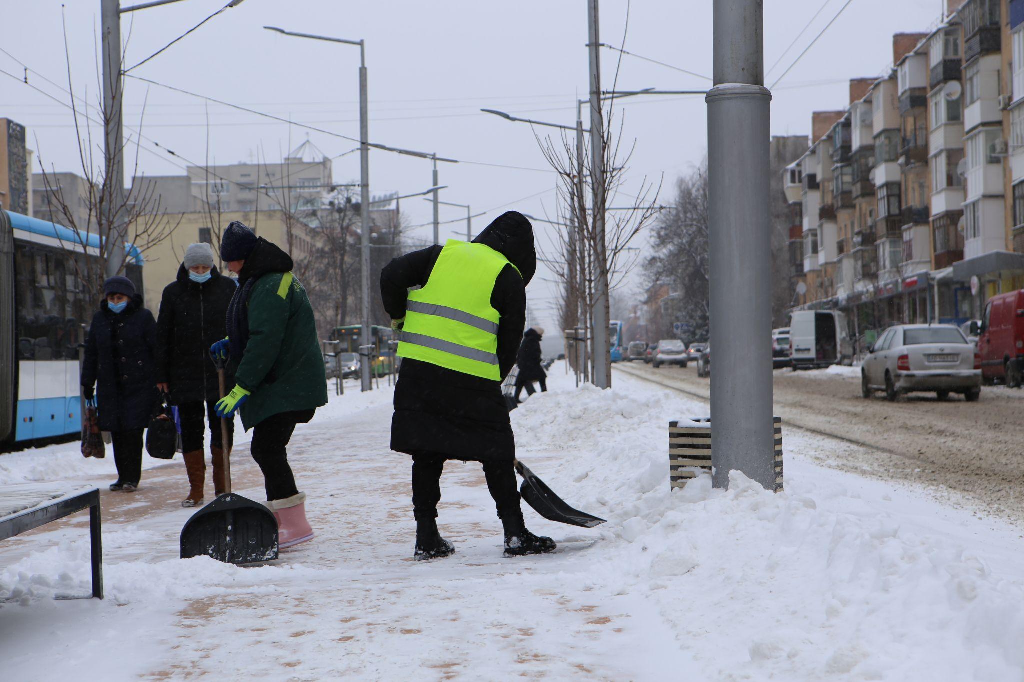 Крім того, для прибирання снігу та посипання протиожеледною сумішшю доріг, тротуарів та зупинок громадського транспорту мобілізували близько трьохсот двірників.