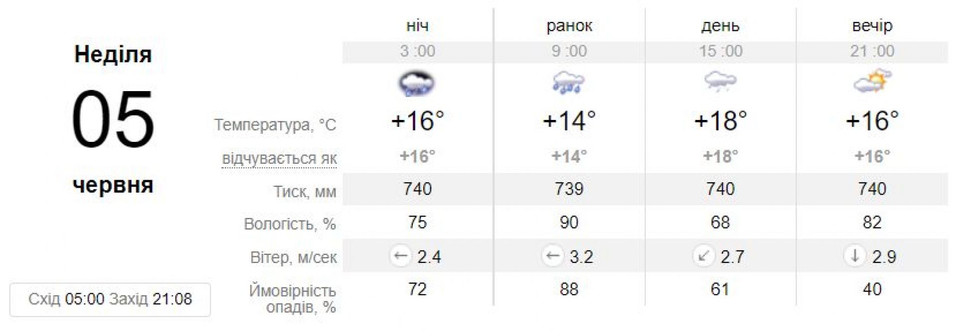 А от в неділю очікується гроза. Температура впаде до +11 градусів вночі та +18 вдень.