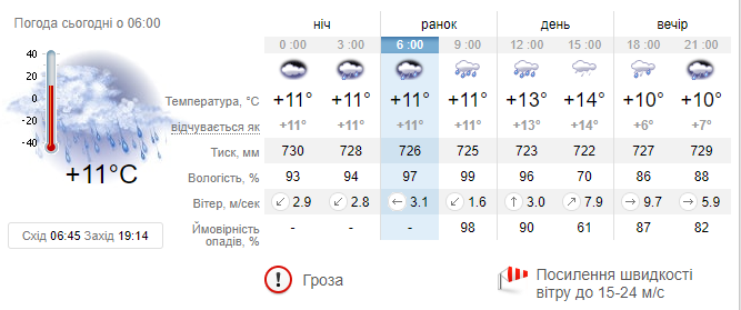 Синоптики оголосили штормове попередження та прогнозують грозу.