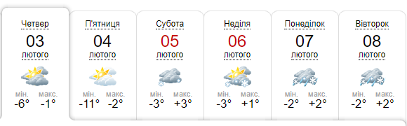 — З найближчої перспективи найхолоднішими очікуються ночі 4 та 5 лютого, -5-13 градусів. Проте далі знову градуси підтягнуться ближче до нуля. Отже, розраховуйте на сиру, переважно хмарну погоду, із стрибком до нічних морозів у п'ятницю та суботу, проте, загалом, не дуже холодну погоду, — прогнозує синоптик.