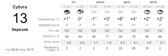 За прогнозом синоптика, ситуація з погодою стабільніша буде у суботу, 13 березня. Тоді трохи втихне вітер та потепліє. Опади все ж будуть і 13, і 14 березня. В неділю повернеться шквальний вітер.