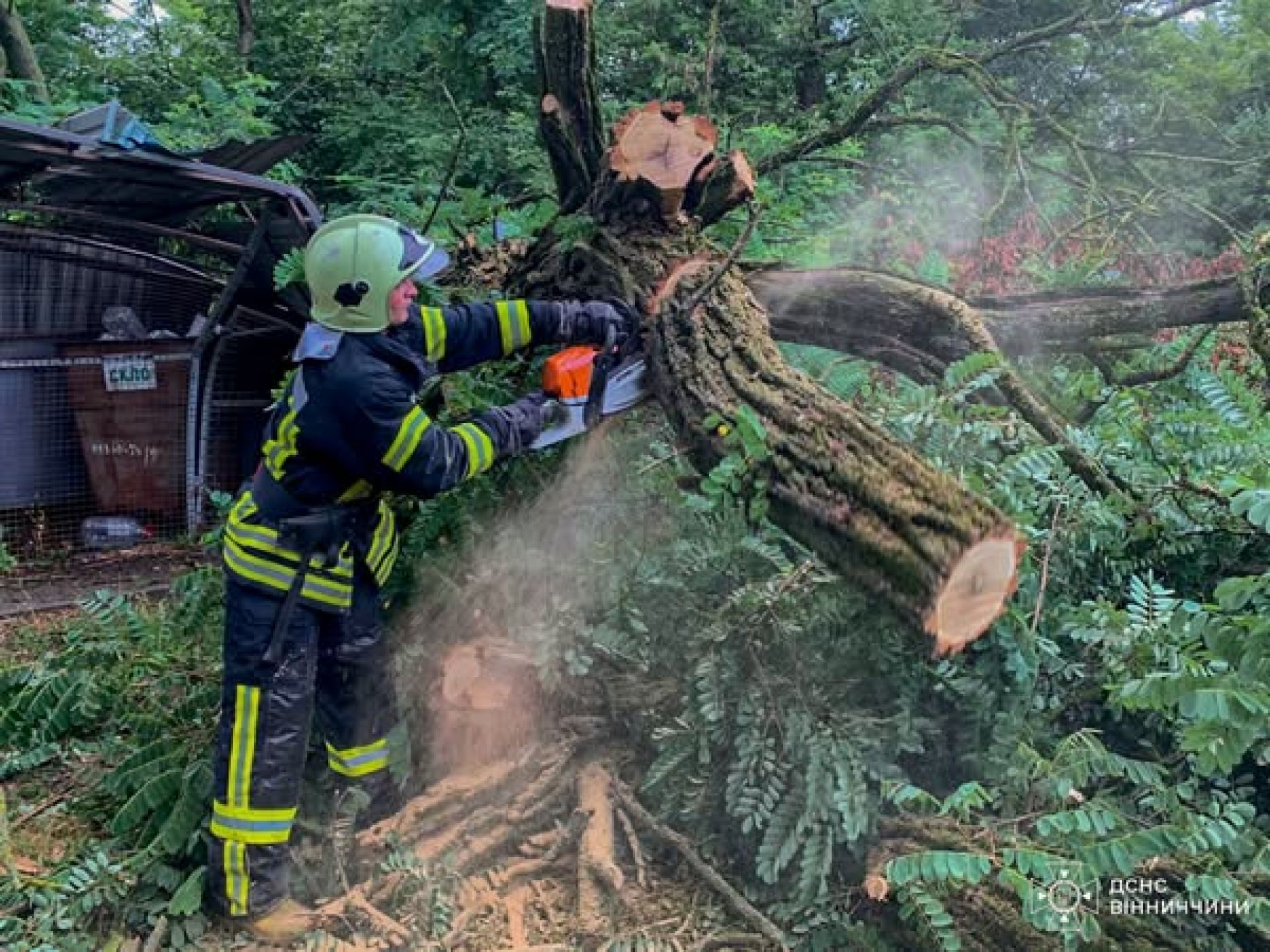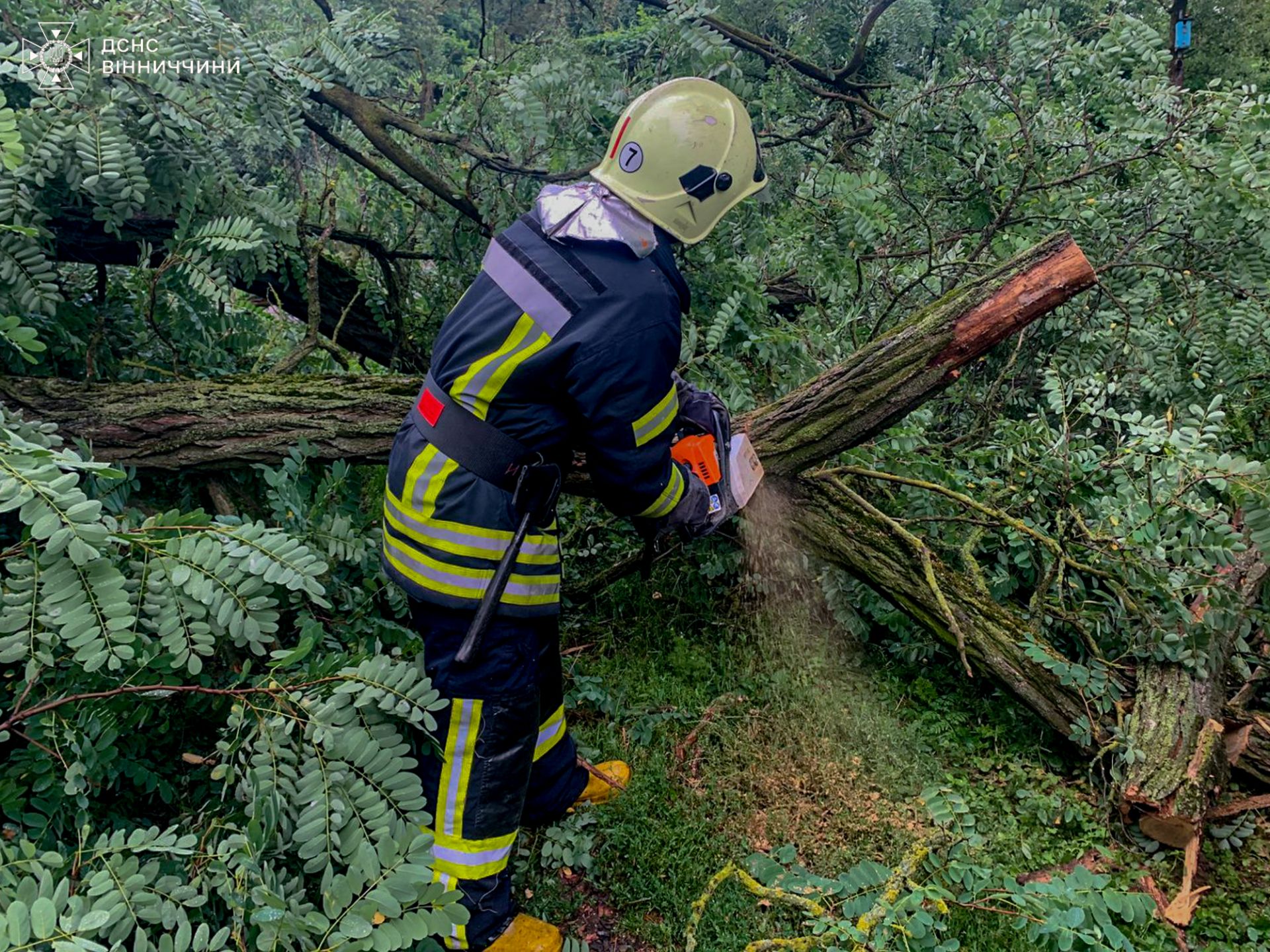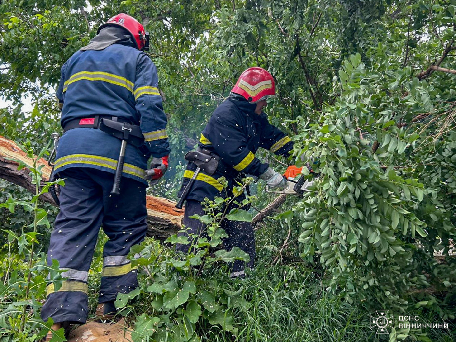 Як повідомили у Головному управлінні ДСНС України у Вінницькій області, бійці ДСНС вже шість разів виїжджали на розкряжування повалених дерев. Роботи проводилися у Хмільницькому та Вінницькому районах, а також у Вінниці.