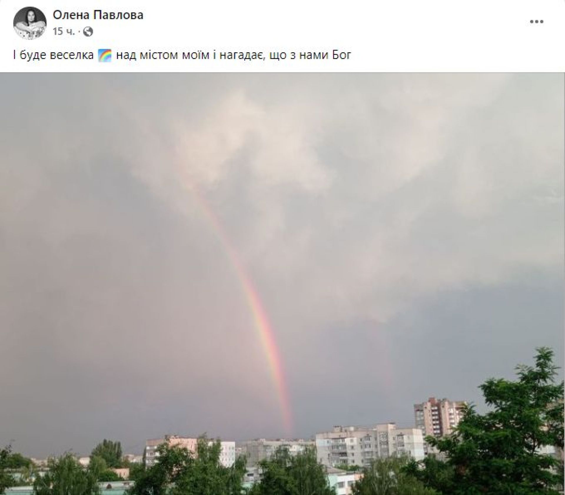 — Після темряви завжди приходить світло. Після війни — наша перемога. Подвійна веселка зараз — бажання України здійсниться, — написала Оксана Поліщук.