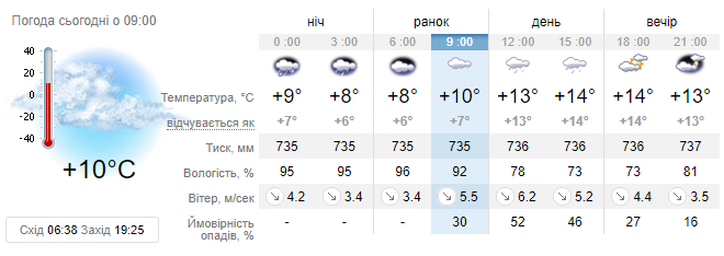 З ранку до самого вечора небо у Вінниці буде вкрите хмарами. Нічний дощ закінчився ще до настання ранку, але вдень він розпочнеться знову та продовжиться до приходу вечора.