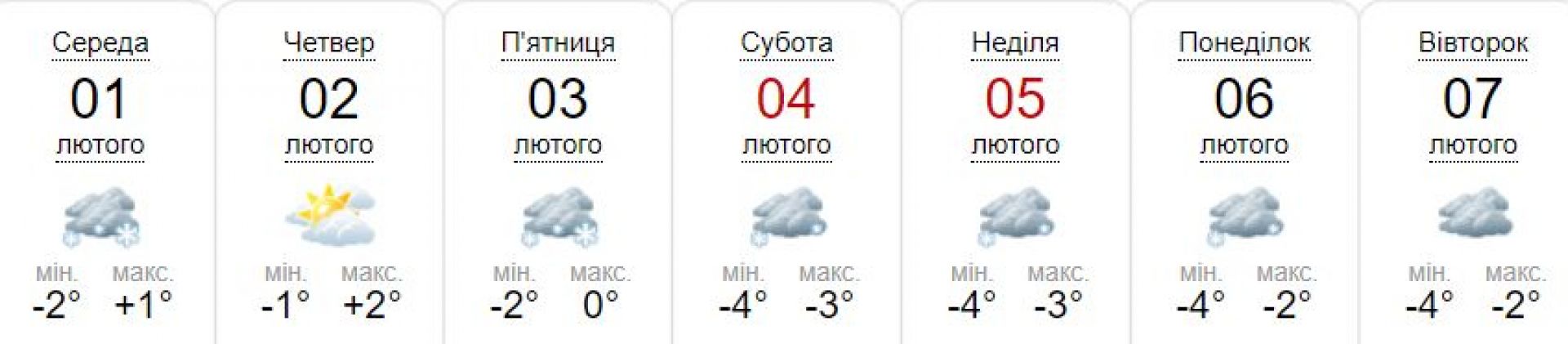 Сайт sinoptik.ua у Вінниці на перший тиждень лютого прогнозує наступну погоду: