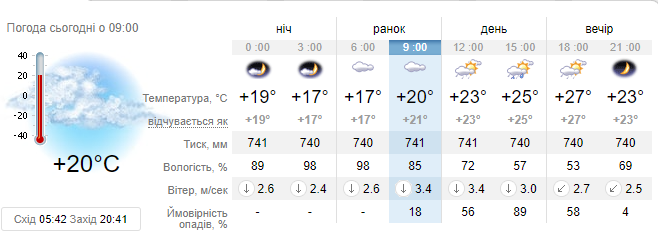 Незважаючи на ясну ніч, ранок у Вінниці — похмурий. Хмари займатимуть своє місце під сонцем до самого вечора. Удень піде дощ, який до вечора повинен послабшати.