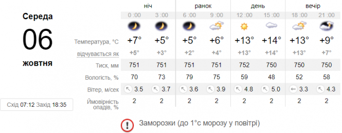 Варто бути обережними наступної доби. Передають сильний вітер. Діденко зазначає, що 6-го жовтня найсильніші пориви очікуються в західних областях, в Криму та Приазов'ї.