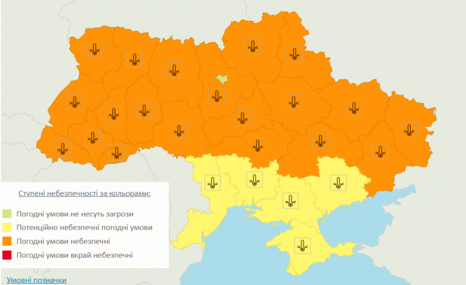 Саме до помаранчевого рівня потрапила наша область. Така ж картина у більшій частині країни: