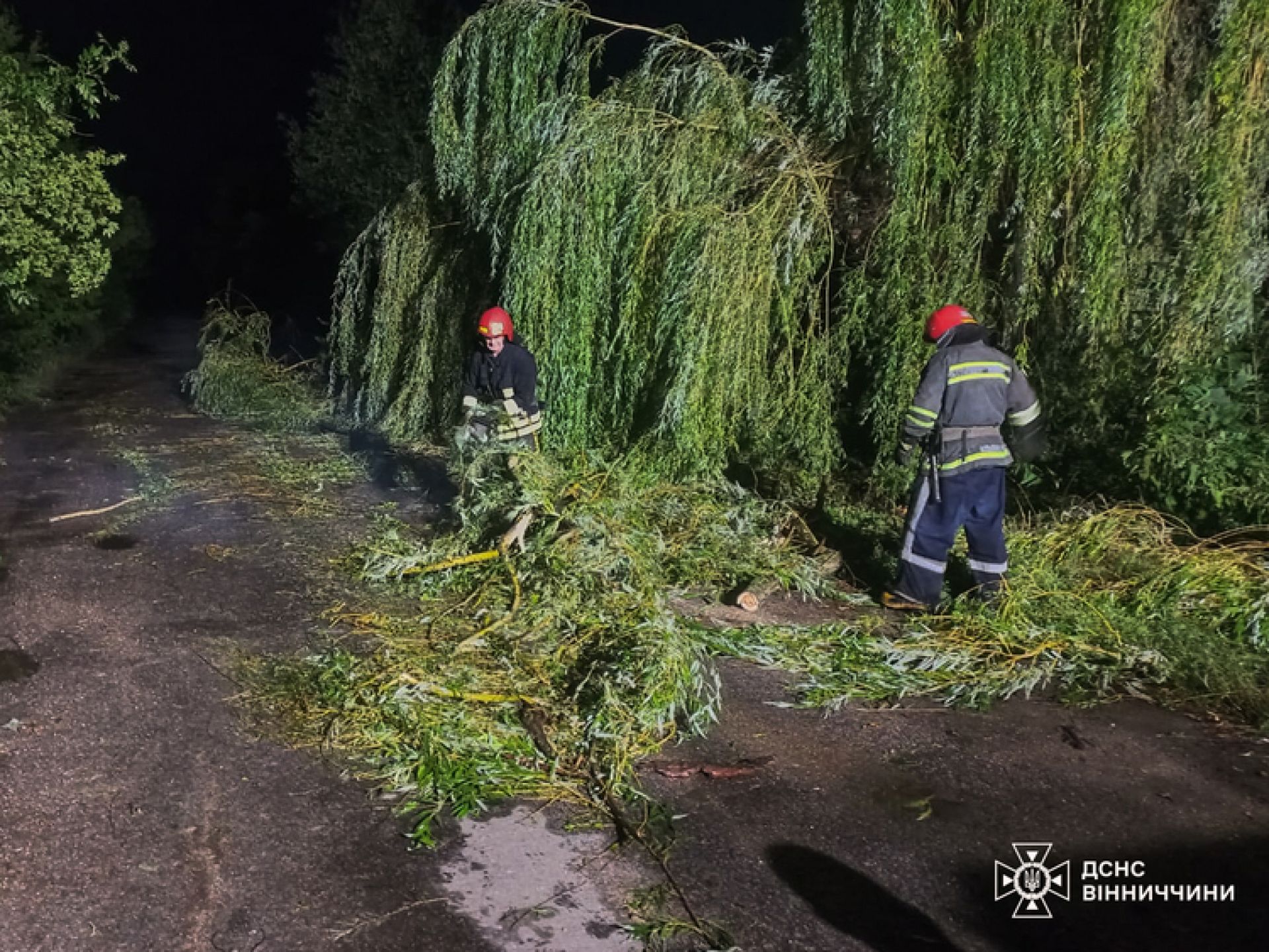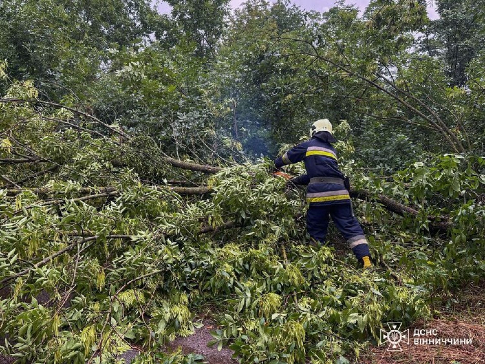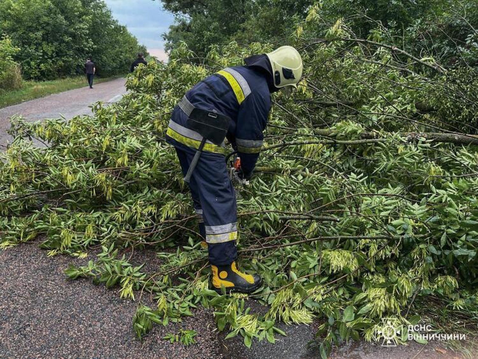 На Вінниччині рятувальники другу добу працюють над ліквідацією наслідків негоди. Лише за минулу добу підрозділи ДСНС здійснили 20 виїздів. Через сильний вітер і зливи дерева падали в різних районах області, зокрема в Хмільницькому, Жмеринському, Гайсинському, Тульчинському, Вінницькому, а також у самій Вінниці.