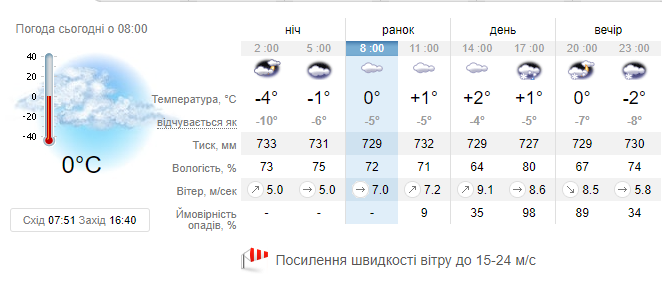 «17 січня вночі у західних і північних областях, вдень в Україні пориви вітру 17-22 м/с, І рівень небезпечності, у Львівській, Тернопільській, Івано-Франківській і Чернівецькій областях вдень пориви 25-28 м/с, II рівень небезпечності, помаранчевий», — прогнозують в гідрометоцентрі.