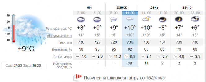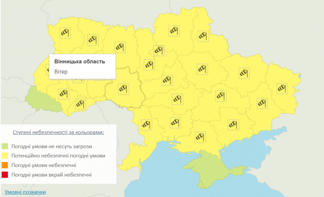Відзначимо, що сайт sinoptik.ua у Вінниці до кінця дня опадів більше не прогнозує. Однак зазначає, що у місті пориви вітру сягатимуть 24 м/с.