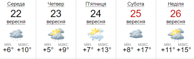 Дощитиме у місті усі найближчі дні, окрім суботи 25 вересня.