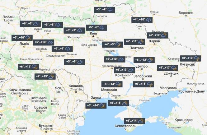 - Уже сьогодні по Україні місцями буде +4, а в нічний час передають заморозки на грунті. Одягайтеся тепліше та візьміть з собою парасолю.