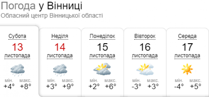 А ось яку погоду на п'ять днів прогнозують у Вінниці:
