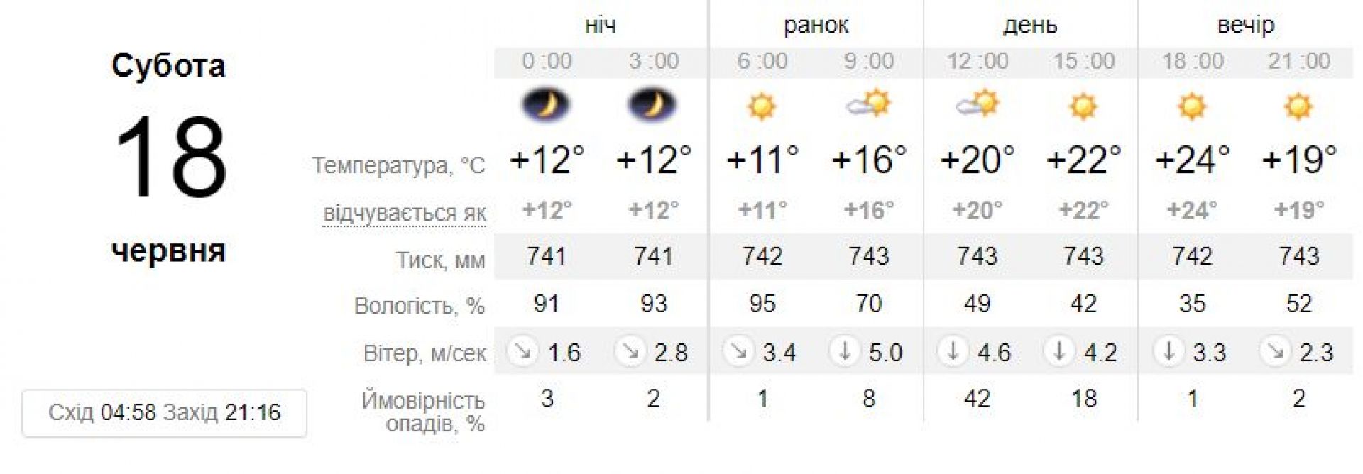 Дощі та грози найбільш ймовірні на Лівобережжі, при грозах місцями шквали. На Правобережжі — переважно без опадів.