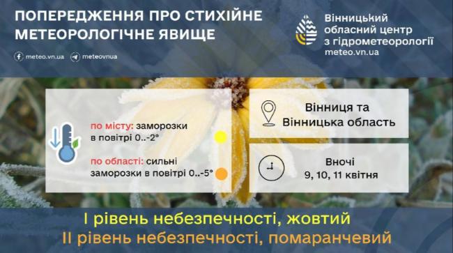 Вночі 9, 10, 11 квітня очікуються сильні заморозки в повітрі по області 0..-5°.