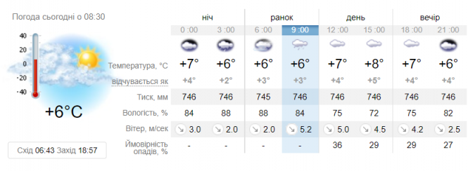 Сайт sinoptik.ua у Вінниці на 22 вересня прогнозує хмарну погоду з дощем, туман та максимально +8 градусів.