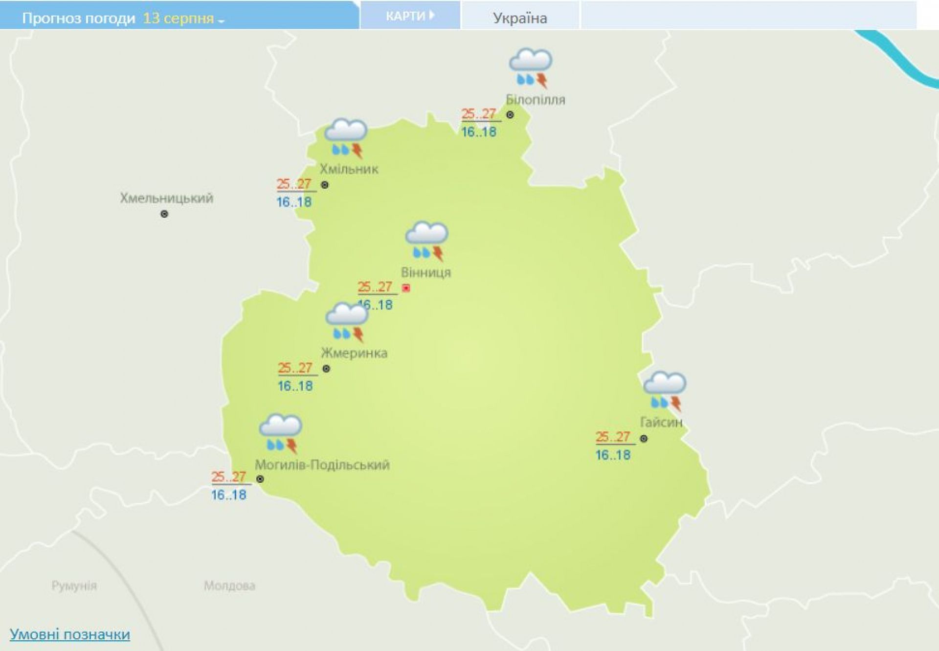 - За даними синоптиків, 13 серпня в Україні очікуються грози, можливий град. Негода омине лише кілька областей.