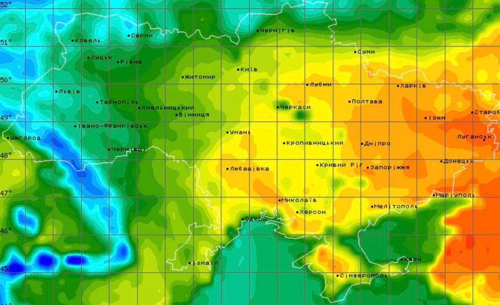 — Погляньте на карту прогнозу температури повітря на 13-те серпня. Почнемо від найсвіжішого повітря у західних областях України, очікується +20+25 градусів. Ні, навіть почнемо з Карпат — там завтра +10+16 градусів. Далі — тепліше. У північних та центральних областях України +25+29 градусів, — цитуємо синоптика. — На Полтавщині, у Кропивницькому з районами та на Сумщині +27+30 градусів. У південній частині України вже +28+33 градуси. Отже, в підсудку матимемо в Україні від +10 до +35 градусів.