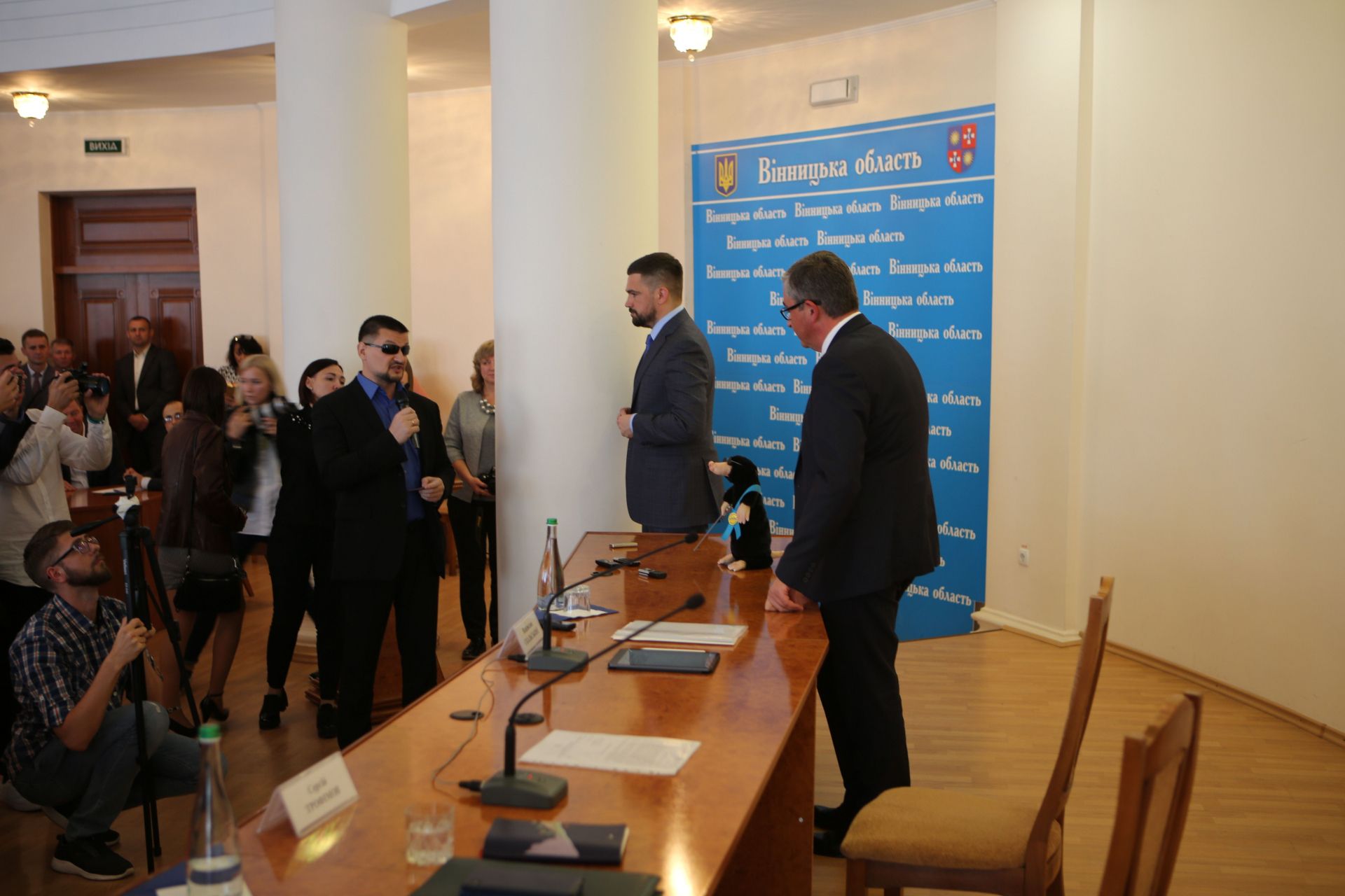 – До мене доходять чутки, що є питання чому на Вінниччині призначають людину Гройсмана. Не хочу приділяти багато уваги. Ми сьогодні призначаємо не Гройсмана, ми призначаємо Скальського. І треба дати час людині. Бачу ваші посмішки, – пояснює Сергій Трофімов. – Я хотів би, щоб у Вінниці поважали владу.